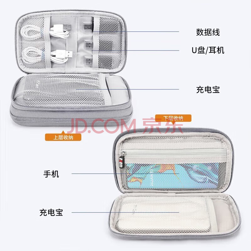 商品相册:必优美充电宝保护套适用移动电源数码收纳包手提便携手机袋双层黑第