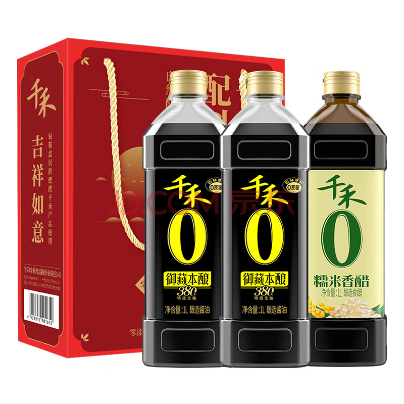 商品相册:千禾不负热爱礼盒【0添加】御藏380天1L*2+糯米香醋1L调味套装第