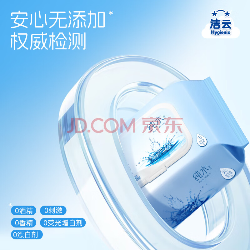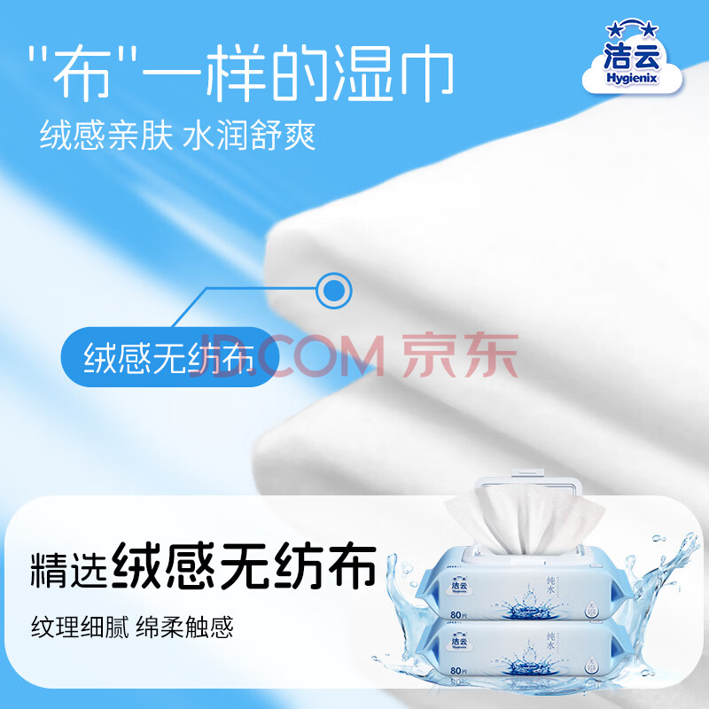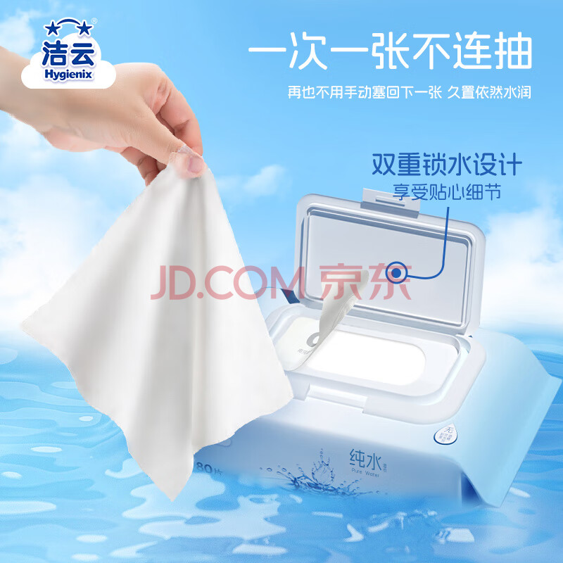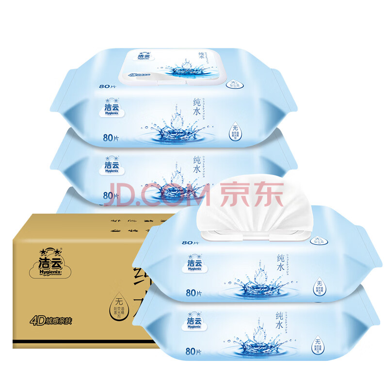商品相册:洁云湿巾 EDI纯水湿纸巾80抽*5包 搭配卫生纸 带盖抽纸眼镜清洁第
