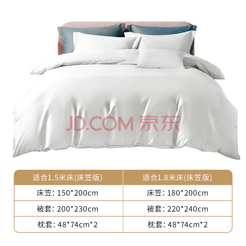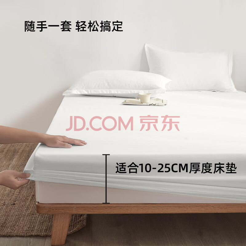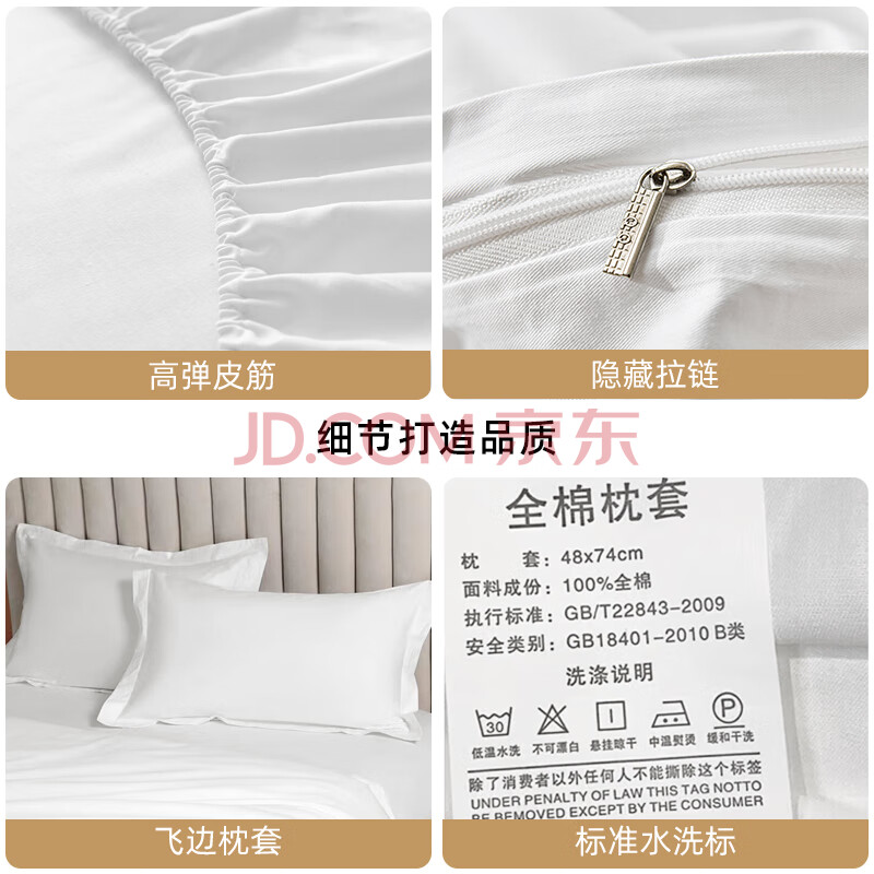 商品相册:然牌 床笠款酒店 白色四件套100%纯棉床笠单件床单被套枕套 1.5米床200x230cm第