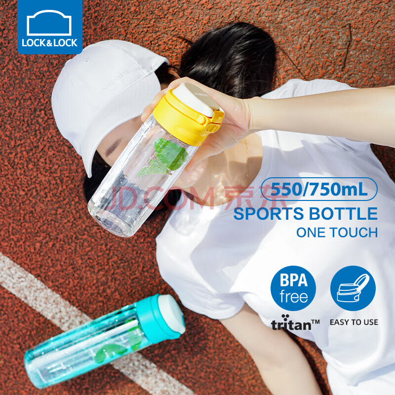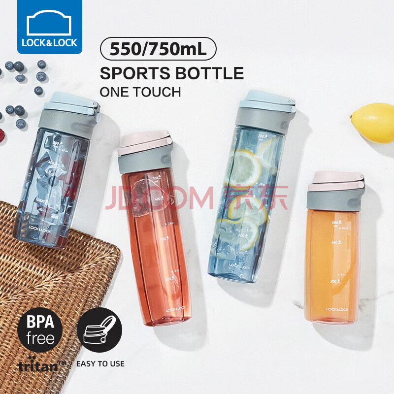 商品相册:乐扣乐扣(LOCK&LOCK)一键式运动水杯塑料杯户外便携水壶带把手刻度男女杯子蓝色750ml第