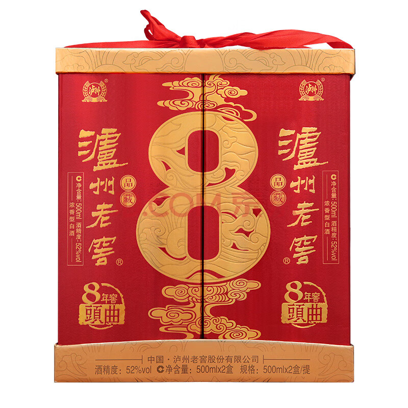 商品相册:泸州老窖 八年窖头曲 品藏 浓香型白酒 52度 500ml*2*3 礼盒整箱第