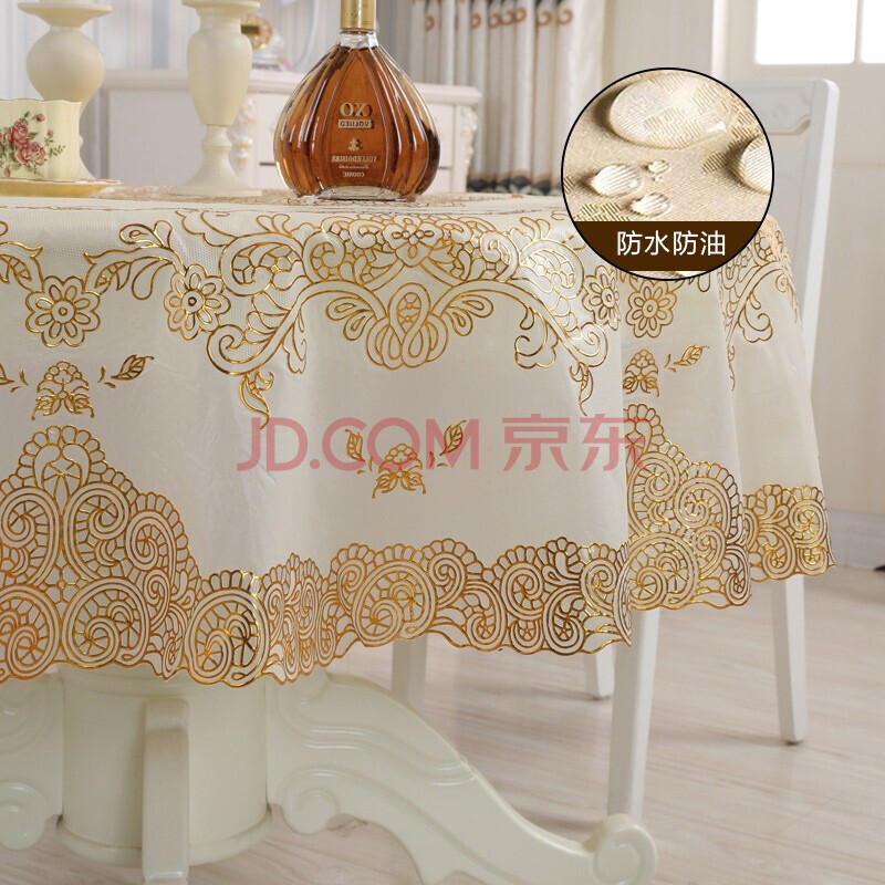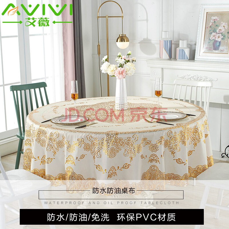 商品相册:艾薇圆桌布防水防油圆形餐桌布茶几台面布pvc餐桌垫180*180cm金玉满堂第