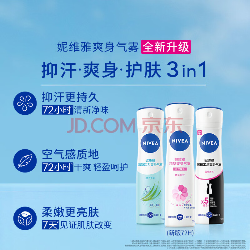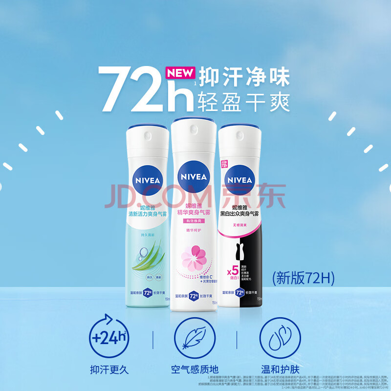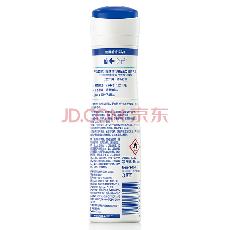 商品相册:妮维雅(NIVEA)活力清新爽身气雾150ml清新舒凉 腋下止汗喷雾长效干爽喷雾第