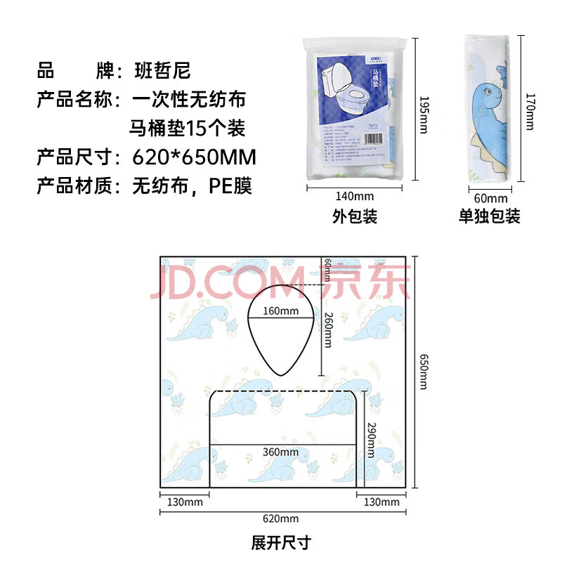 商品相册:班哲尼一次性马桶垫坐便套纸旅行酒店全包复盖加大厚待产妇防水独立包装第