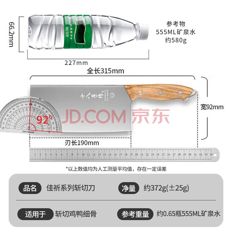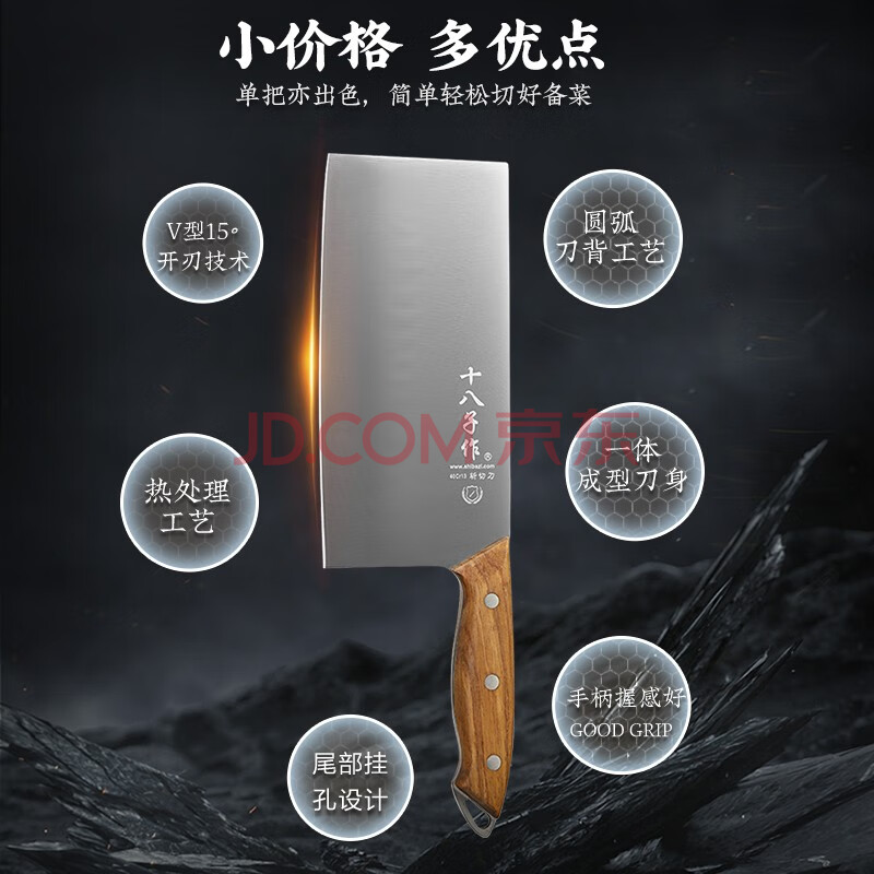 商品相册:十八子作 阳江十八子菜刀 家用花梨木柄刀具 佳祈斩切两用刀S2232-AB第