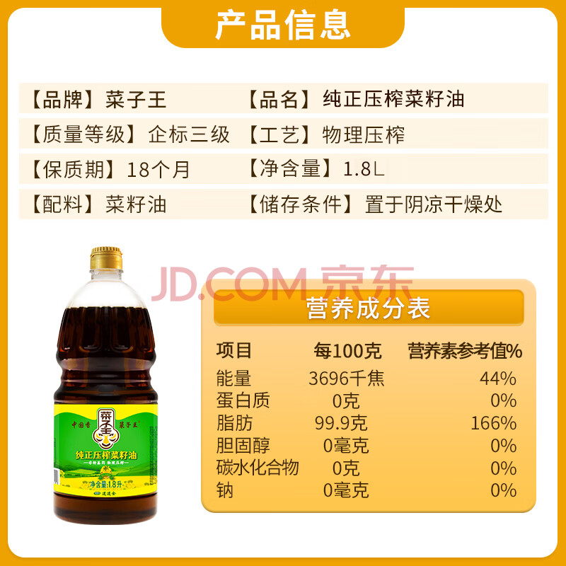 商品相册:菜子王【保真菜籽油】四川菜籽油非转基因 纯正压榨1.8L 四川风味食用油第