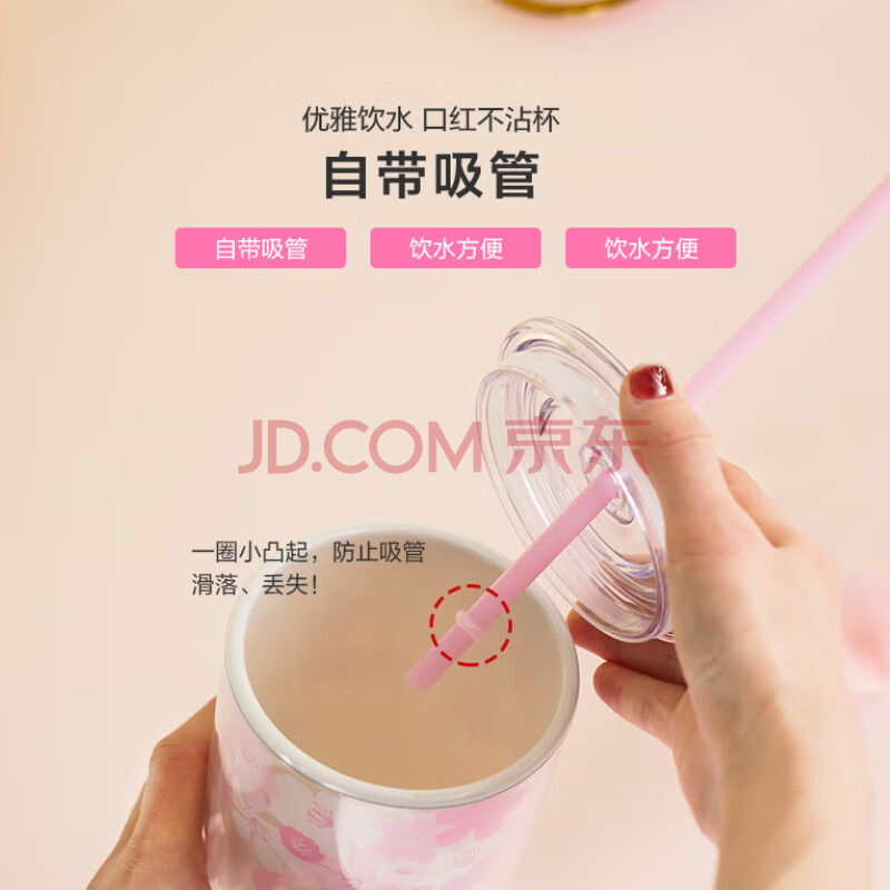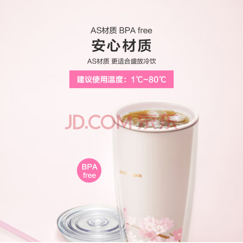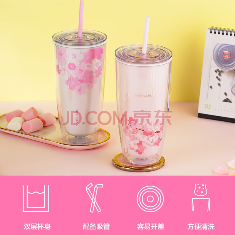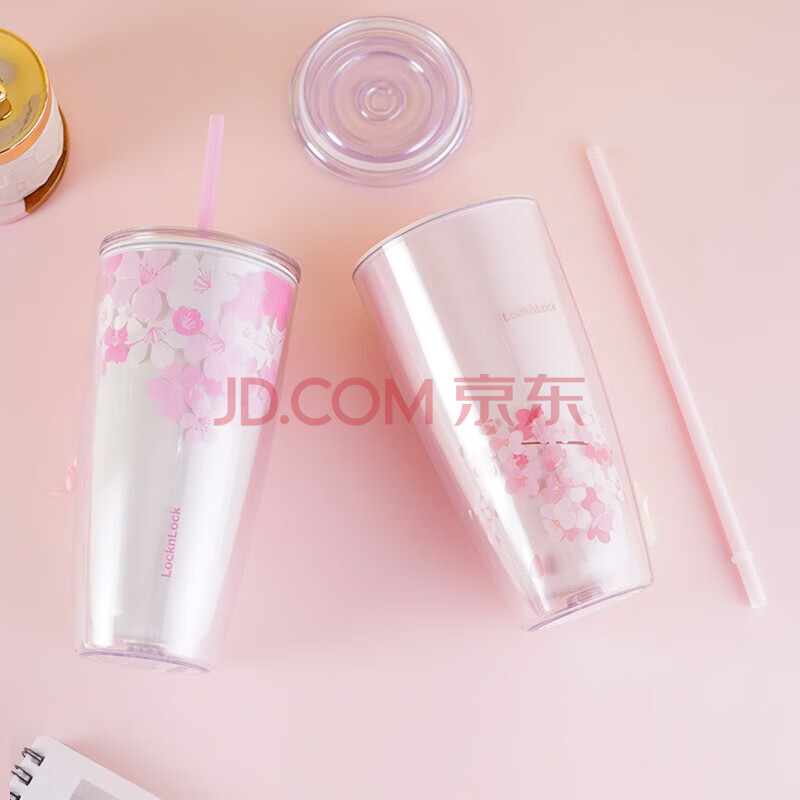 商品相册:乐扣乐扣(LOCK&LOCK)双层吸管塑料杯樱花夏日畅饮便携水杯750ML粉色(赠吸管刷)第