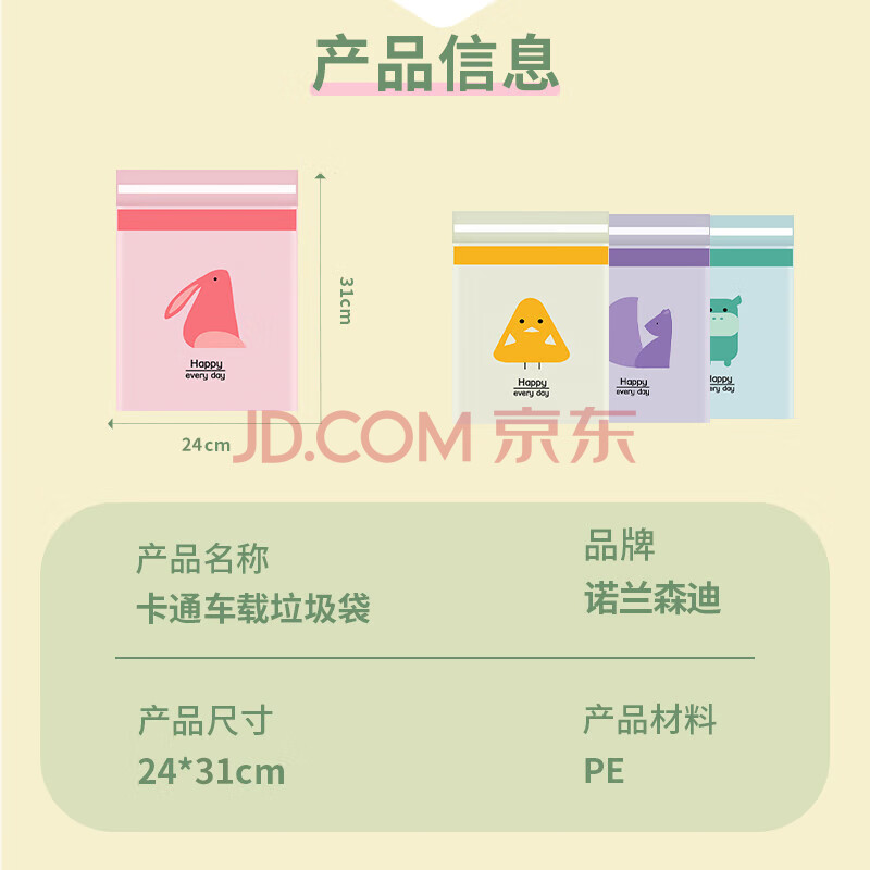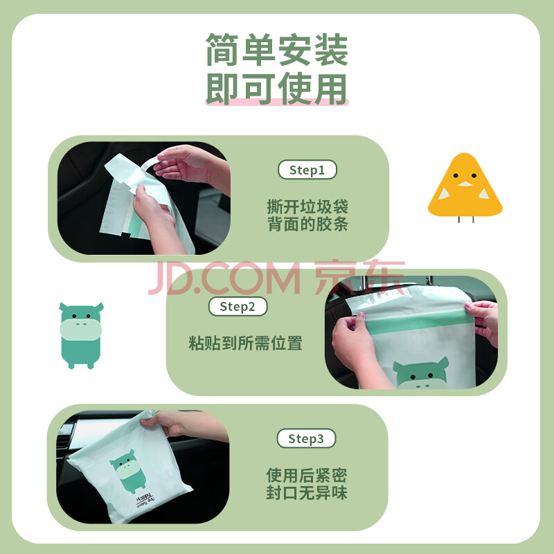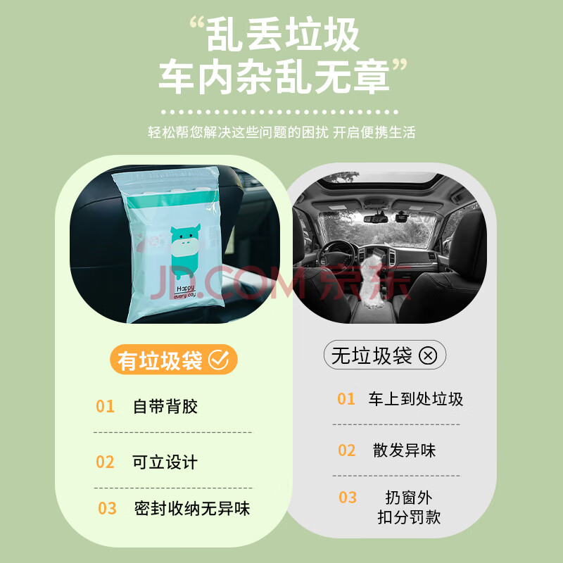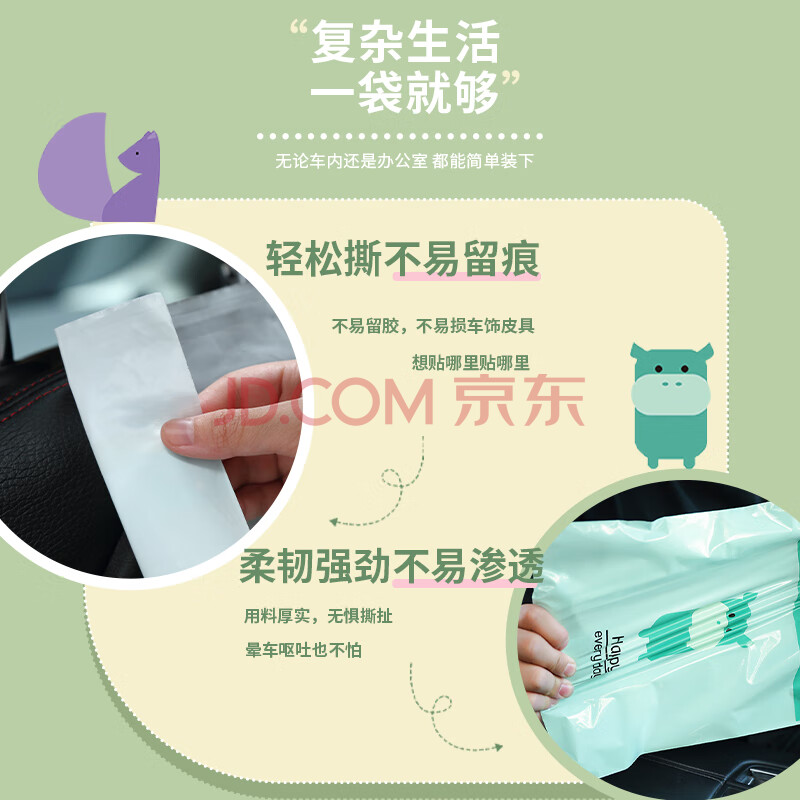 商品相册:诺兰森迪 车载垃圾袋粘贴 挂式清洁袋塑料袋呕吐袋 旅行自驾游必备60只装第