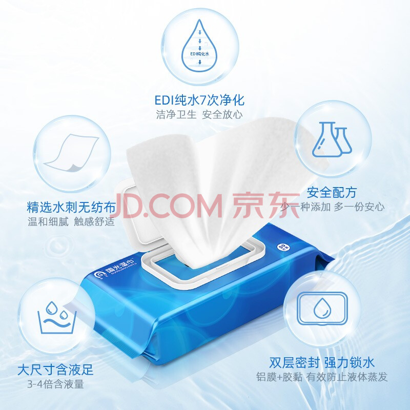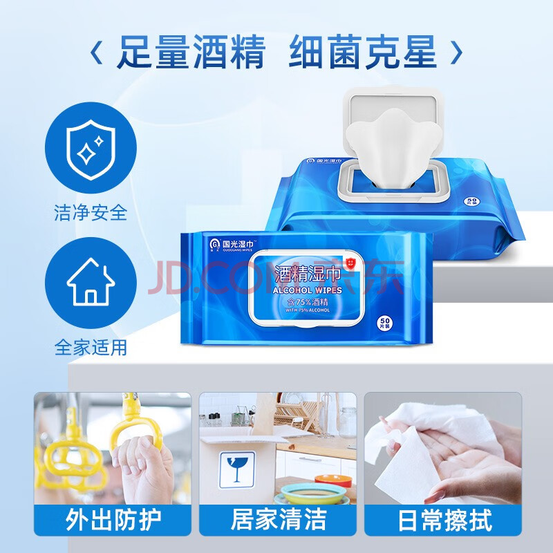 商品相册:国光 75%酒精湿巾 50抽*1包 杀菌率99.9%消毒卫生湿纸巾第
