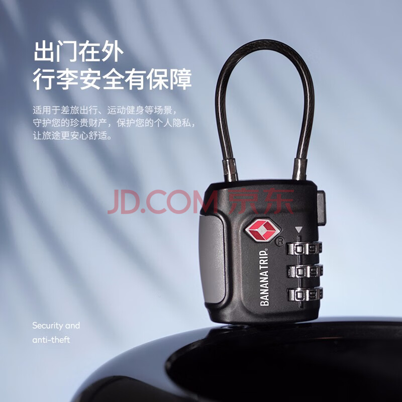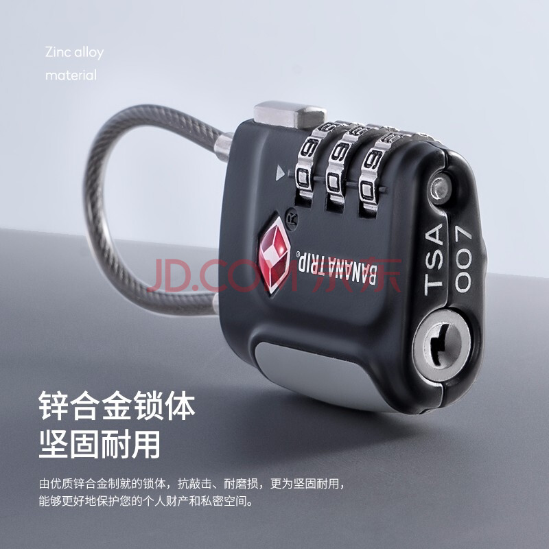 商品相册:蕉趣(BANANA TRIP)三键TSA密码锁 出国出境行李锁柜子锁钢丝软锁背包挂锁旅行防盗锁第