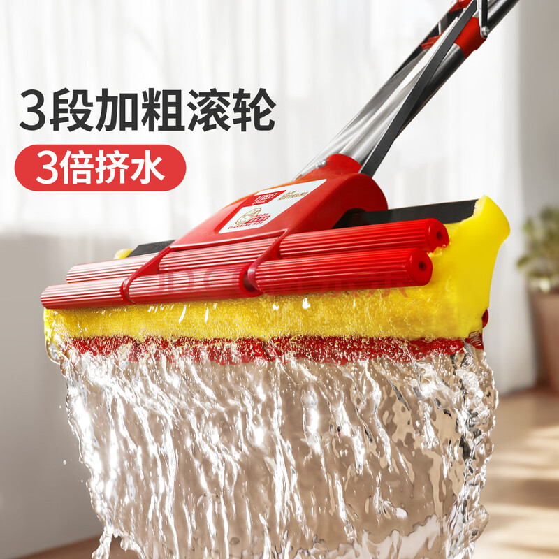 商品相册:好媳妇(okaywife)胶棉拖把27cm共2个头 双滚轮挤水海绵地拖墩布懒人擦地拖地神器第
