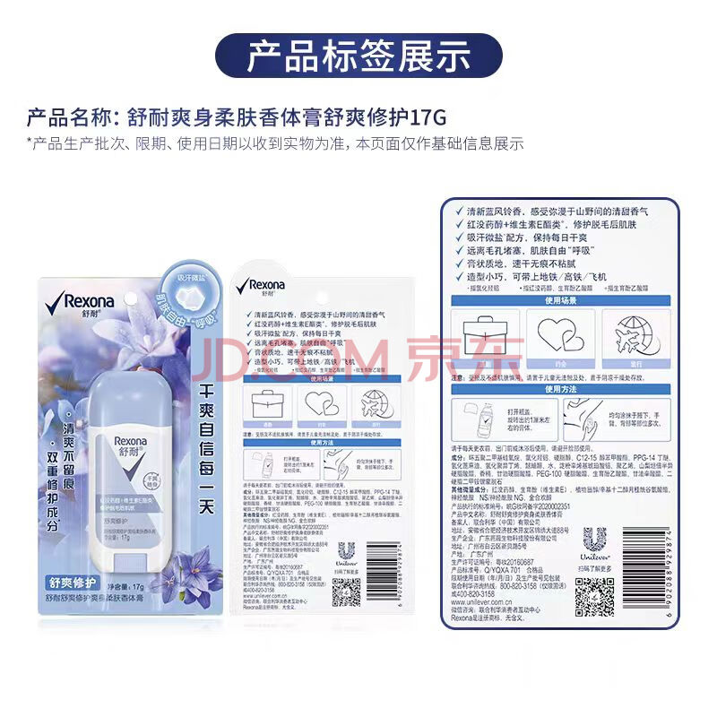 商品相册:舒耐爽身香体膏/止汗石 蓝风铃17g 干爽净味 速干无痕 舒爽修护 第