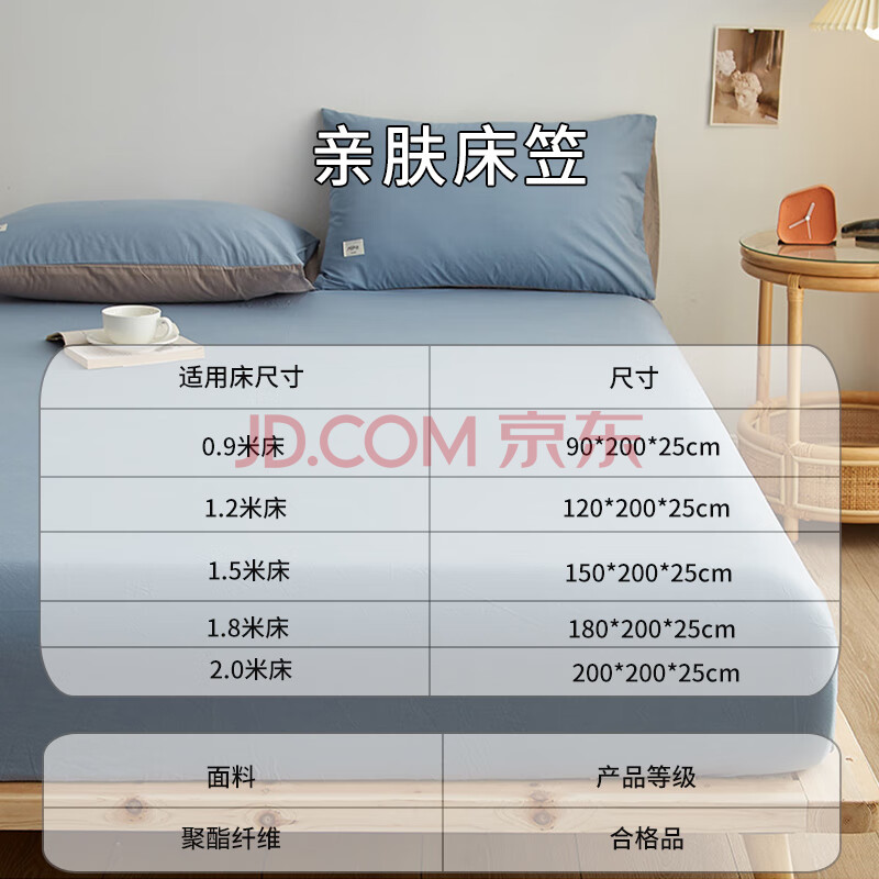 商品相册:艾薇学生床笠单件单人防滑床罩防尘磨毛床笠 适用1.2m床 牛仔蓝第