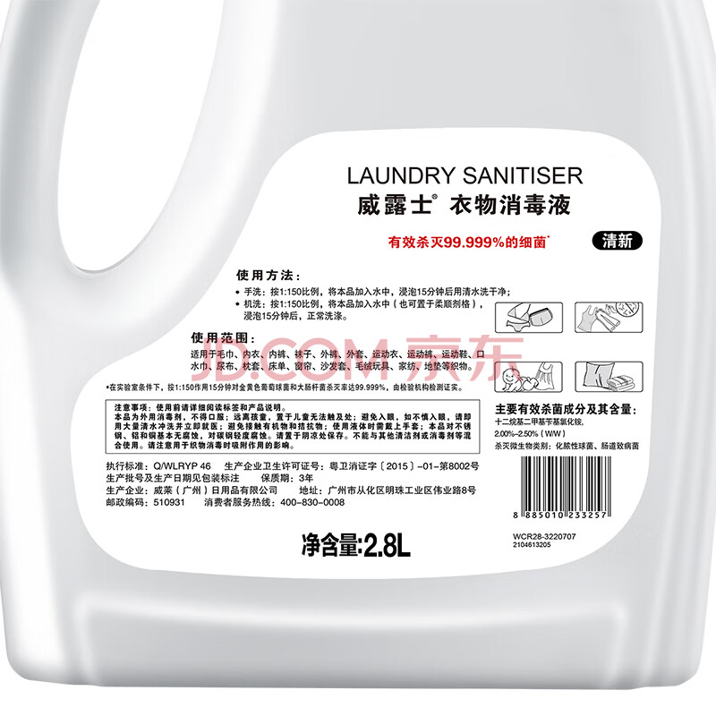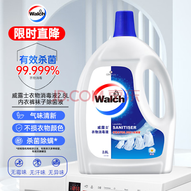 商品相册:威露士衣物消毒液清新2.8L 杀菌99.9%除螨内衣衣物除菌液 可配洗衣液用第