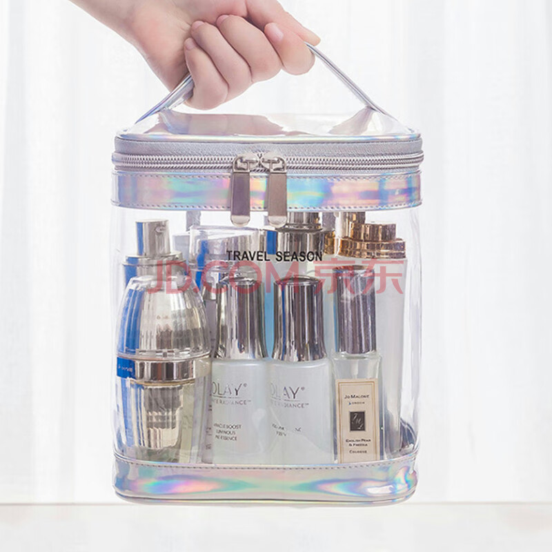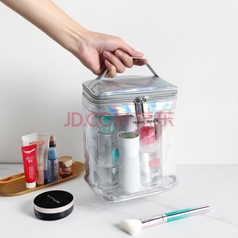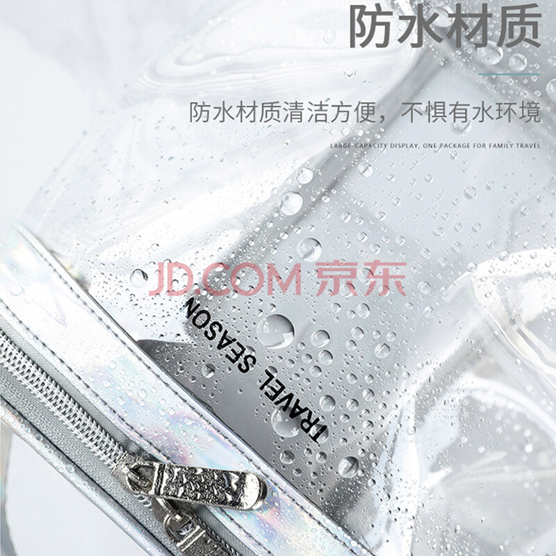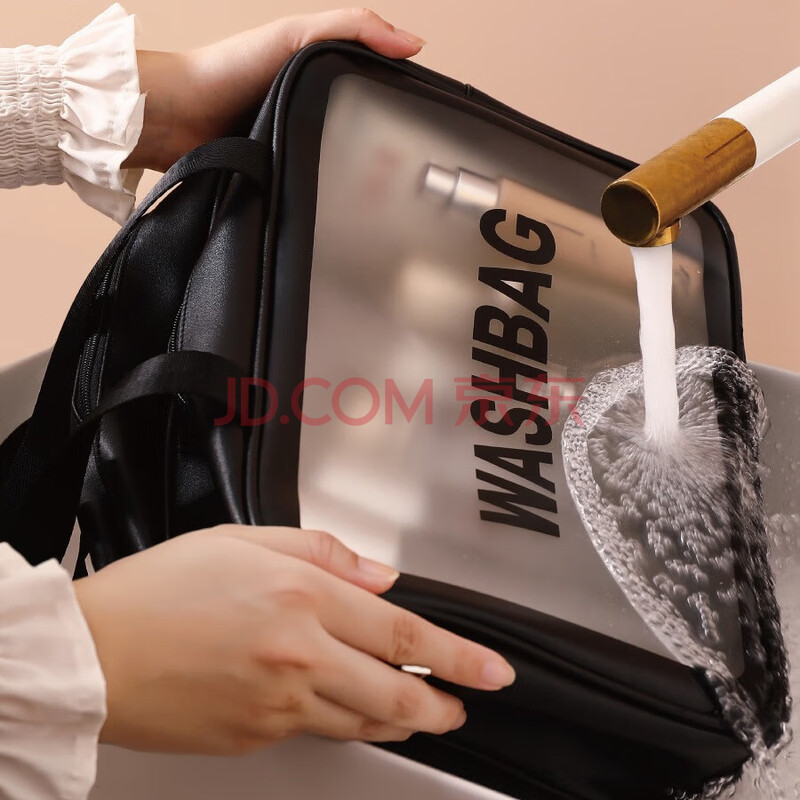 商品相册:欣沁洗漱包透明PVC化妆包便携大容量收纳包洗漱用品袋黑色双层大号第
