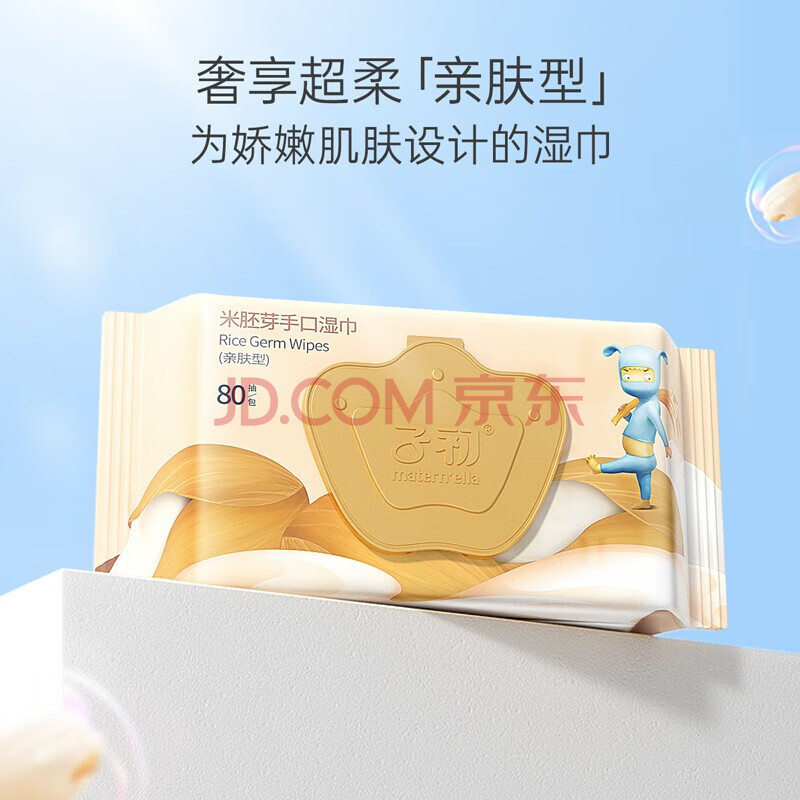商品相册:子初米胚芽手口湿巾80抽*12包加厚亲肤型柔湿纸巾家用湿用盒装带盖第