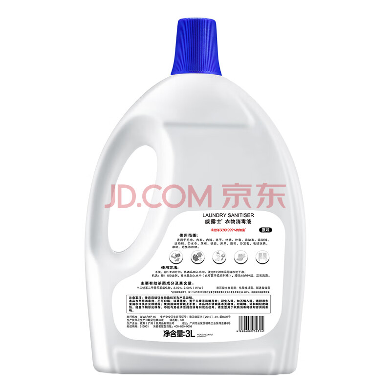 商品相册:威露士衣物消毒液原味3L 杀菌99.9%除螨内衣衣物除菌液 可配洗衣液用第