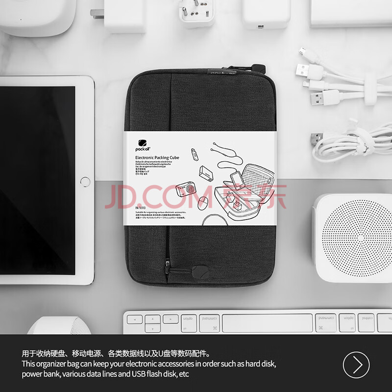 商品相册:pack all数据线收纳包充电宝移动电源整理包硬盘耳机数码配件保护包 黑色第