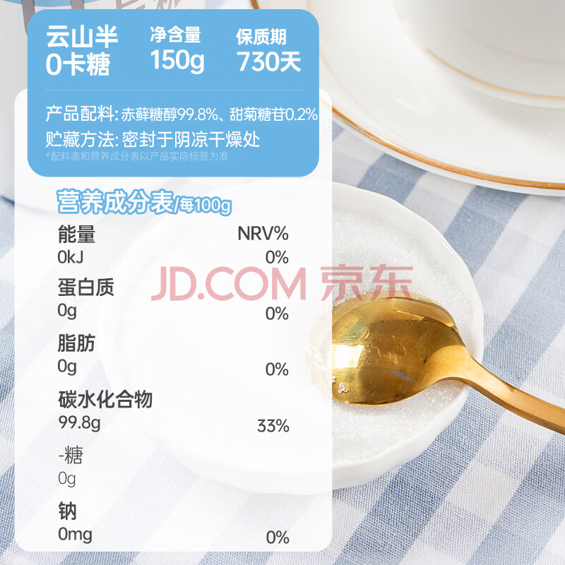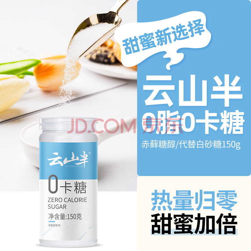 商品相册:云山半零0卡糖代糖150g 赤藓糖醇0蔗糖0脂肪0热量代替白砂糖咖啡伴侣第