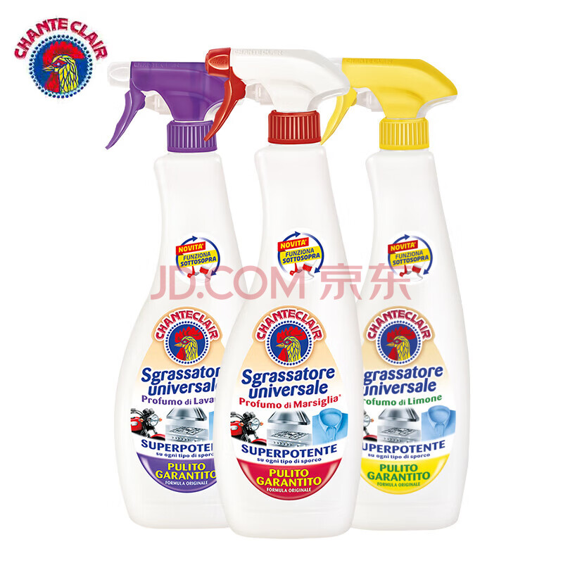 商品相册:大公鸡管家油污清洁剂多功能厨房油污净3瓶装 (薰衣草+柠檬+马赛香) 600ml*3第