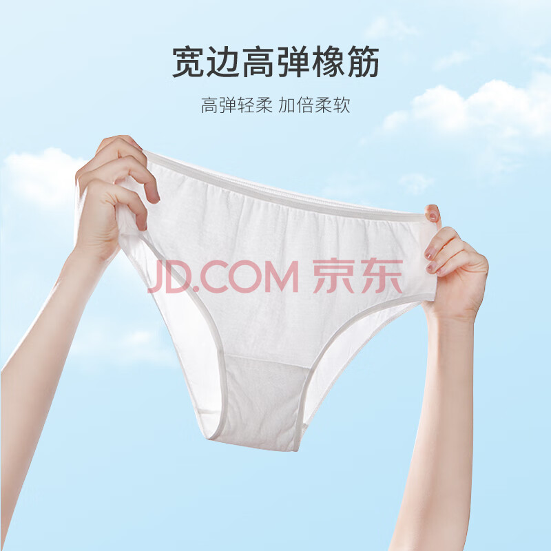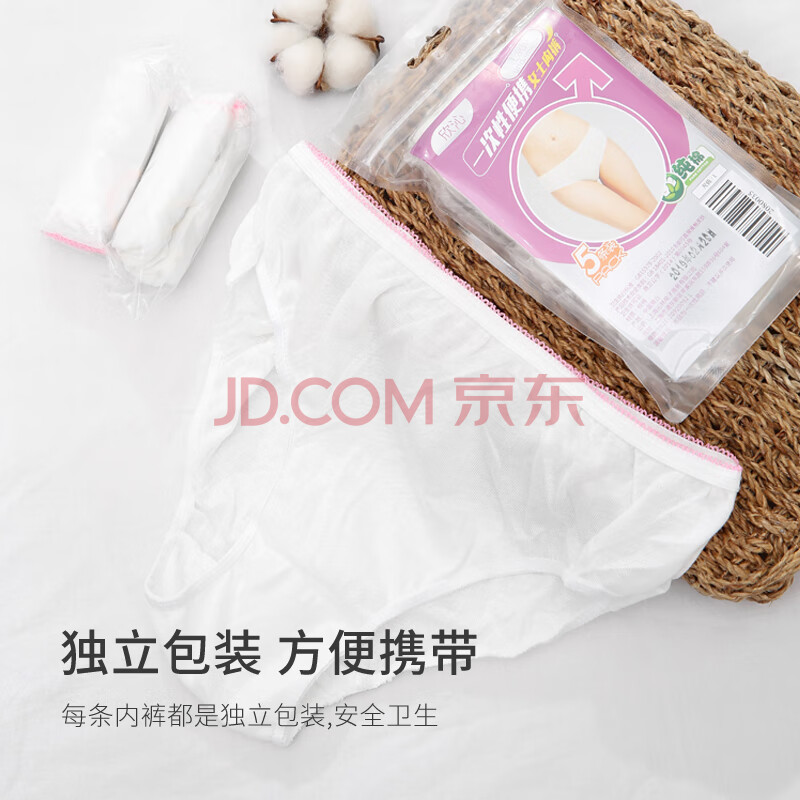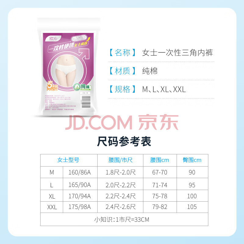 商品相册:欣沁一次性内裤女日抛裤纯棉免洗无菌短裤双层内档便携包装五条装 L号第
