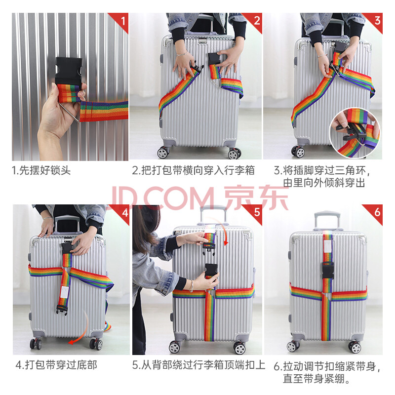 商品相册:班哲尼十字打包带出国托运拉杆箱捆绑带扎带行李箱托运打包带旅行安全捆箱带含行李书写牌彩虹色第