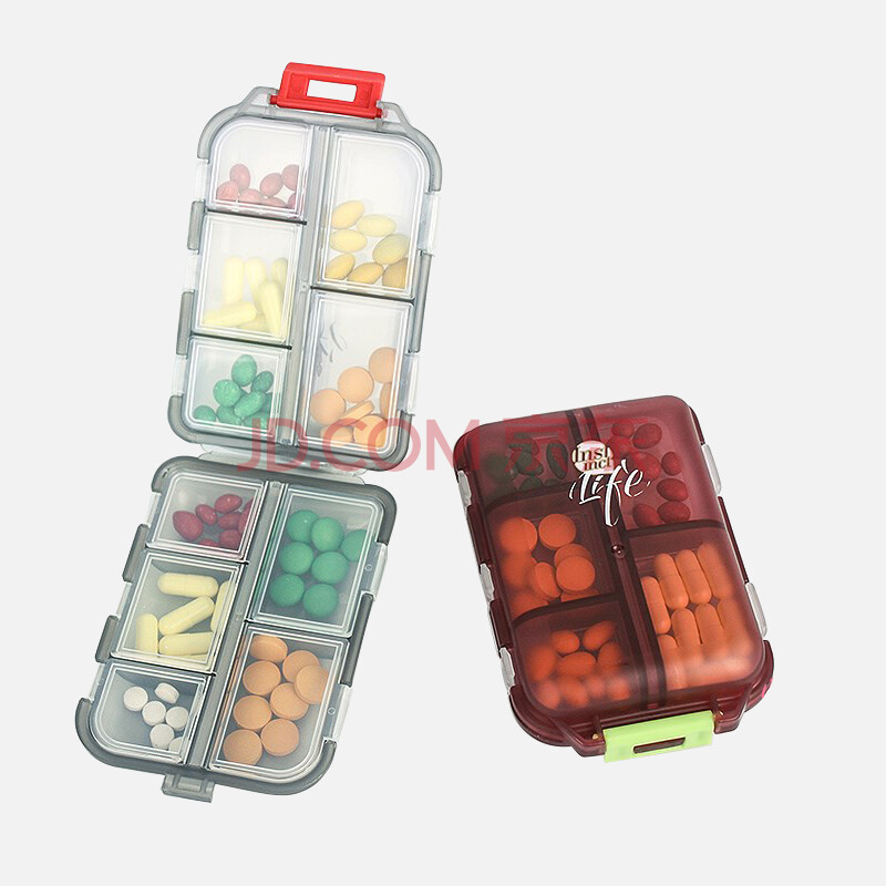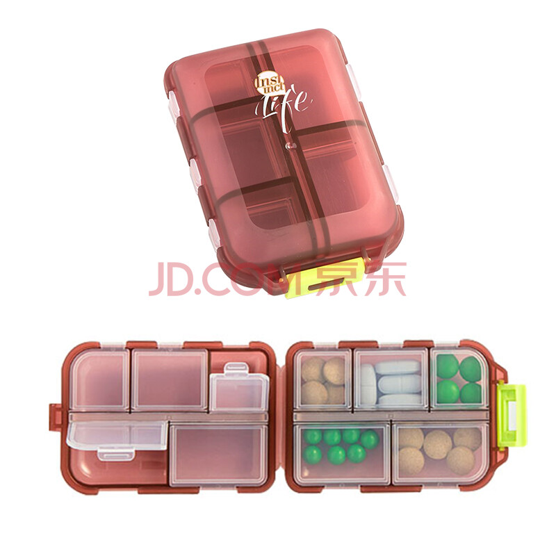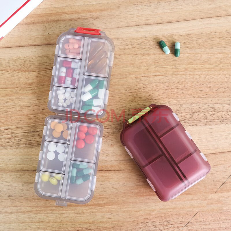 商品相册:班哲尼 便携式药盒日本迷你10格小药盒便携式收纳盒薬盒药品盒一周旅行随身药片药丸分装药盒子 咖啡色第