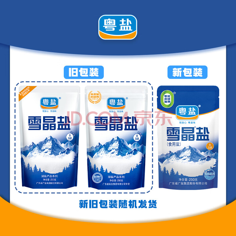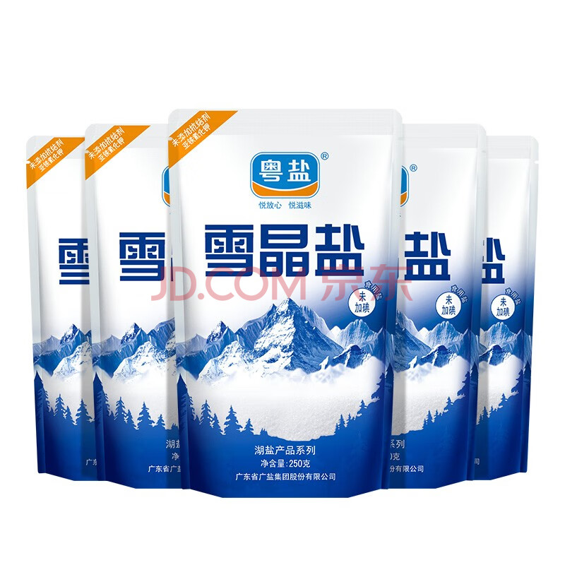 商品相册:粤盐 雪晶盐250g*5包 无碘盐 食用盐无抗结剂0添加 天然湖盐 调料第
