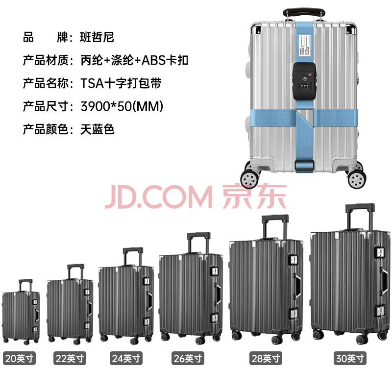 商品相册:班哲尼十字打包带出国托运拉杆箱捆绑带打包带TSA密码锁扎带行李带锁旅行安全捆箱带天蓝色第