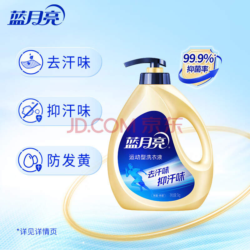 商品相册:蓝月亮运动洗衣液小苍兰香 1kg泵装 去汗味留香 预防发黄24小时抑菌第