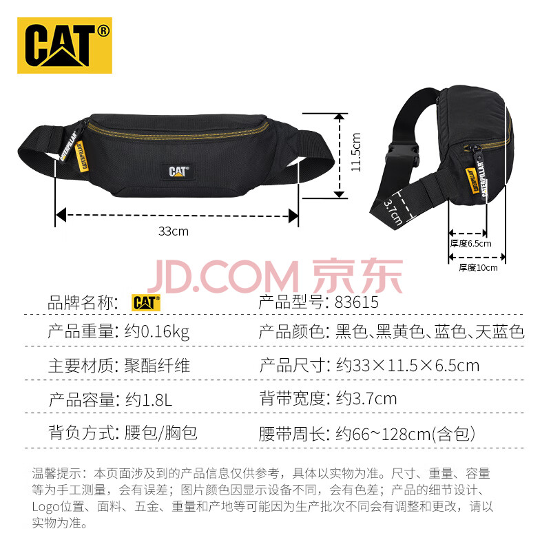 商品相册:卡特(CAT)腰包休闲胸包手机包斜挎包户外轻运动单肩包挎包潮男礼物黑83615第