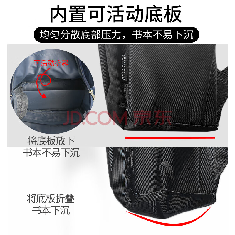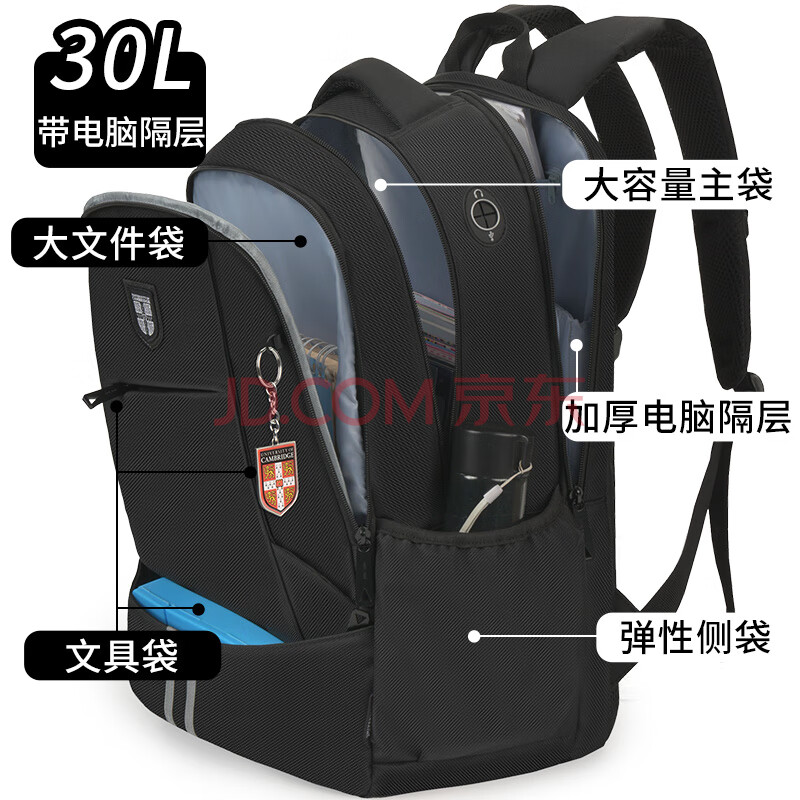 商品相册:UNIVERSITY OF CAMBRIDGE英国剑桥大学书包初中生男减负大容量中学生高中双肩背包CA429黑第