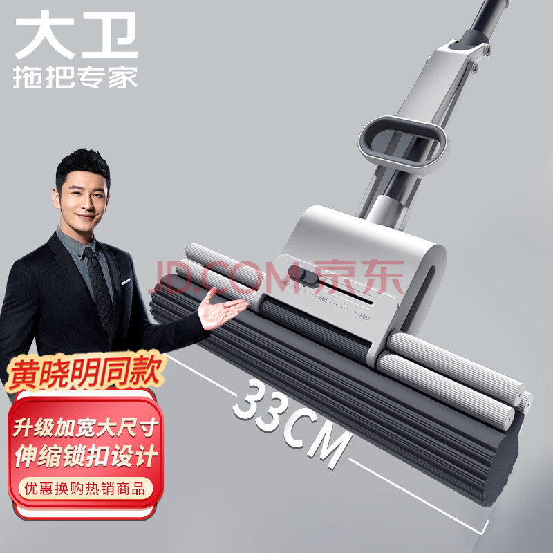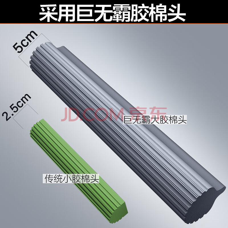 商品相册:大卫胶棉拖把33cm海绵头杆长132cm2头M11 PVA胶棉滚轮式双排挤水第