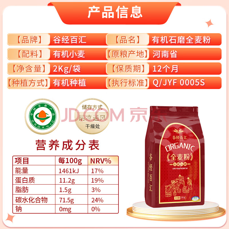 商品相册:谷经百汇有机石磨全麦粉 4斤 烘焙原料 家用面粉 小麦粉第
