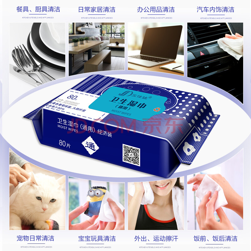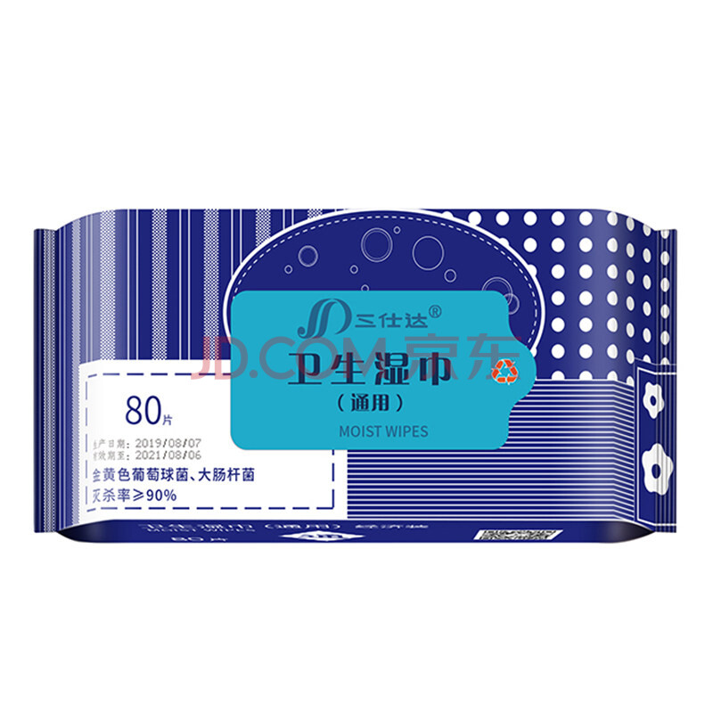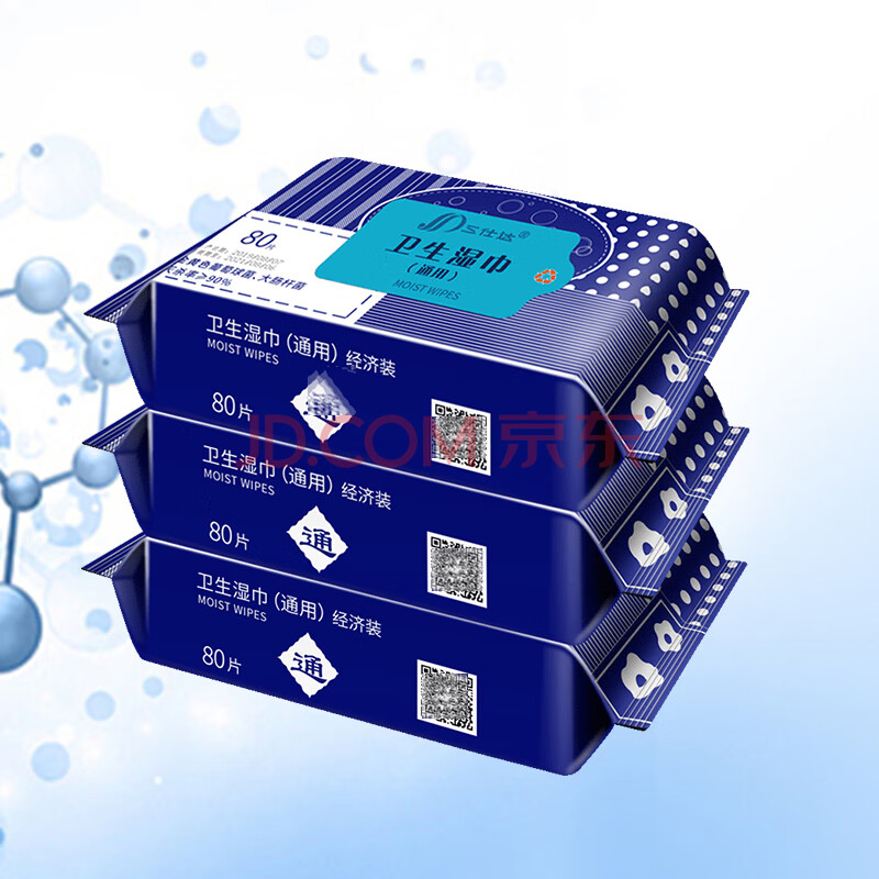 商品相册:三仕达卫生湿巾80片*3包卫生湿巾洁肤湿纸巾马桶杀菌宠物清洁 不含酒精第