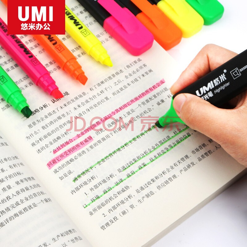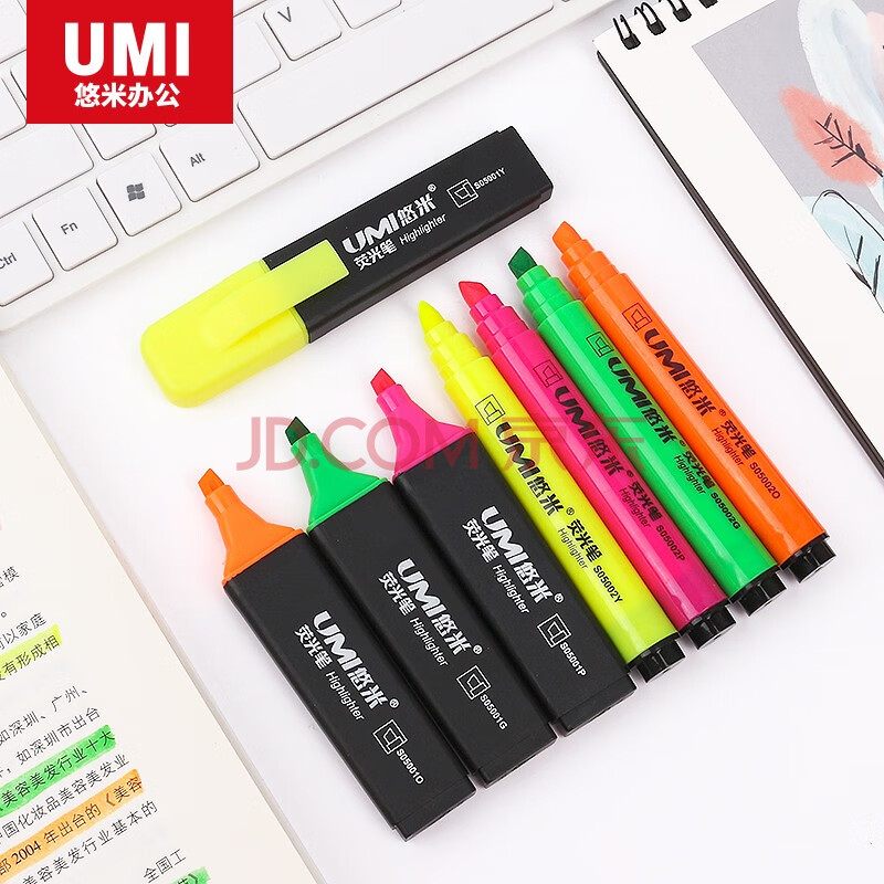 商品相册:【开学必备】安兴 悠米 时尚醒目扁杆荧光笔6mm S05001Y 黄10支装第