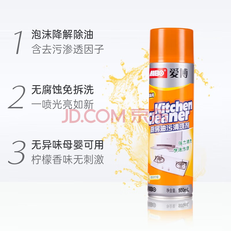 商品相册:爱博(AIBO)油烟机清洗剂500ml*2 强力去油污厨房清洁剂去重油污神器 多功能泡沫清洗剂油污净第