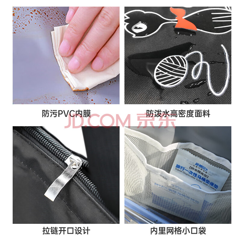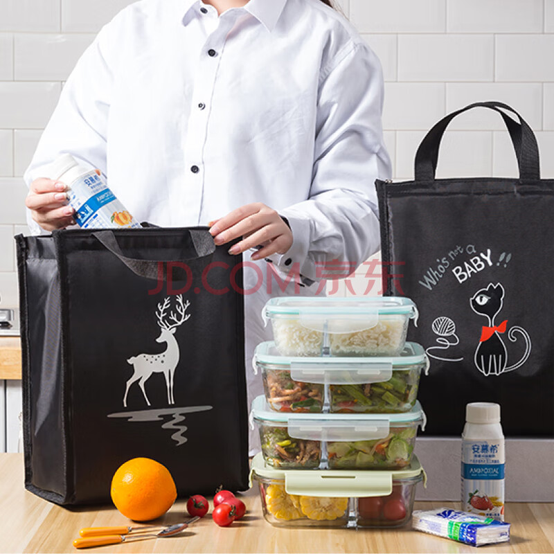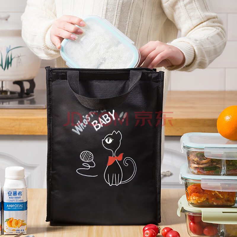商品相册:班哲尼 饭盒袋便当包提饭包手提式铝箔保冷保温包储奶袋 大号黑色小猫咪第