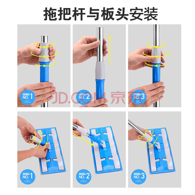 商品相册:雅高 平板拖把35CM带2布夹布拖把木地板拖把360度旋转无死角夹板板拖第