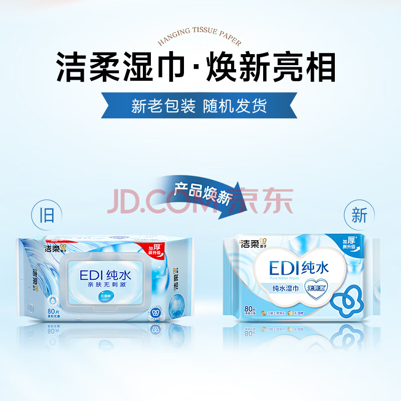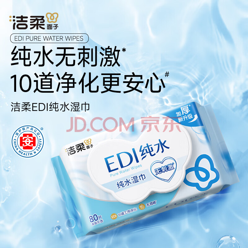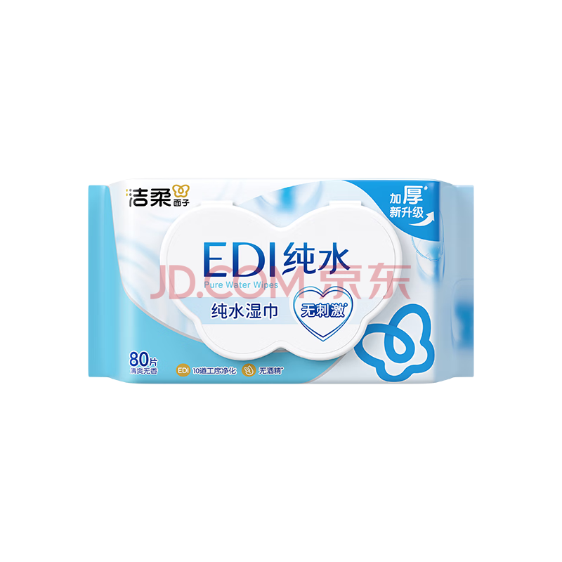 商品相册:洁柔湿巾EDI纯水湿纸巾80抽 温和不含酒精 手口可用200*150mm校园必备第