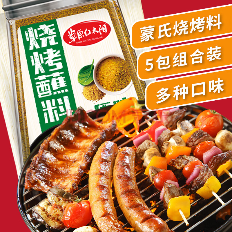 商品相册:草原红太阳烧烤料 烧烤蘸料 烧烤撒料 原味 奥尔良味5袋【真食材无麸皮】第