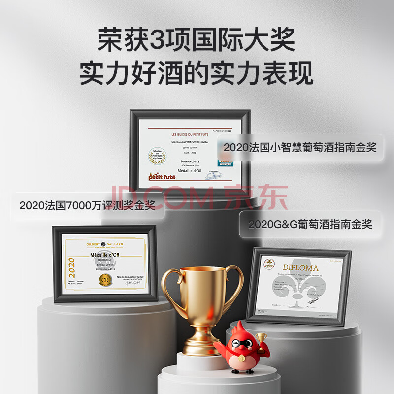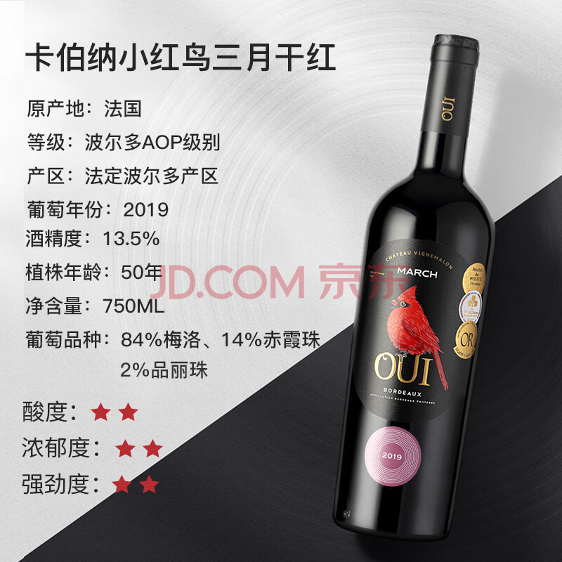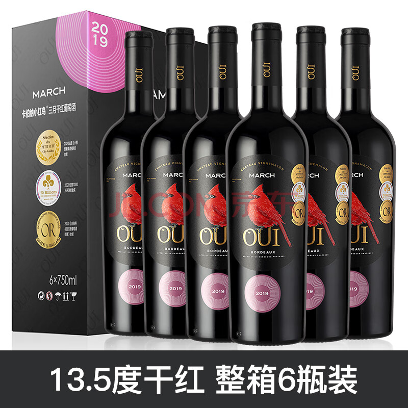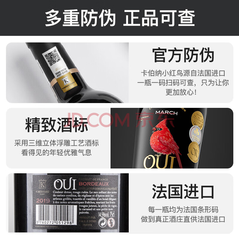 商品相册:卡伯纳 法国原瓶进口小红鸟波尔多AOC/AOP级干红葡萄酒750ml*6畅饮年货第