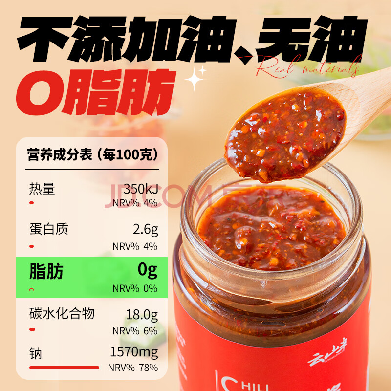 商品相册:云山半0脂肪辣椒酱250g 鲜椒剁椒下饭酱辣酱0添加蔗糖轻食健身餐拌面酱第