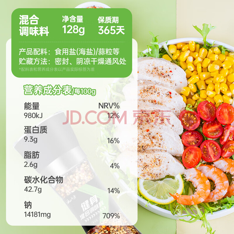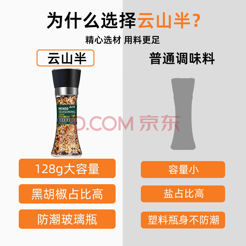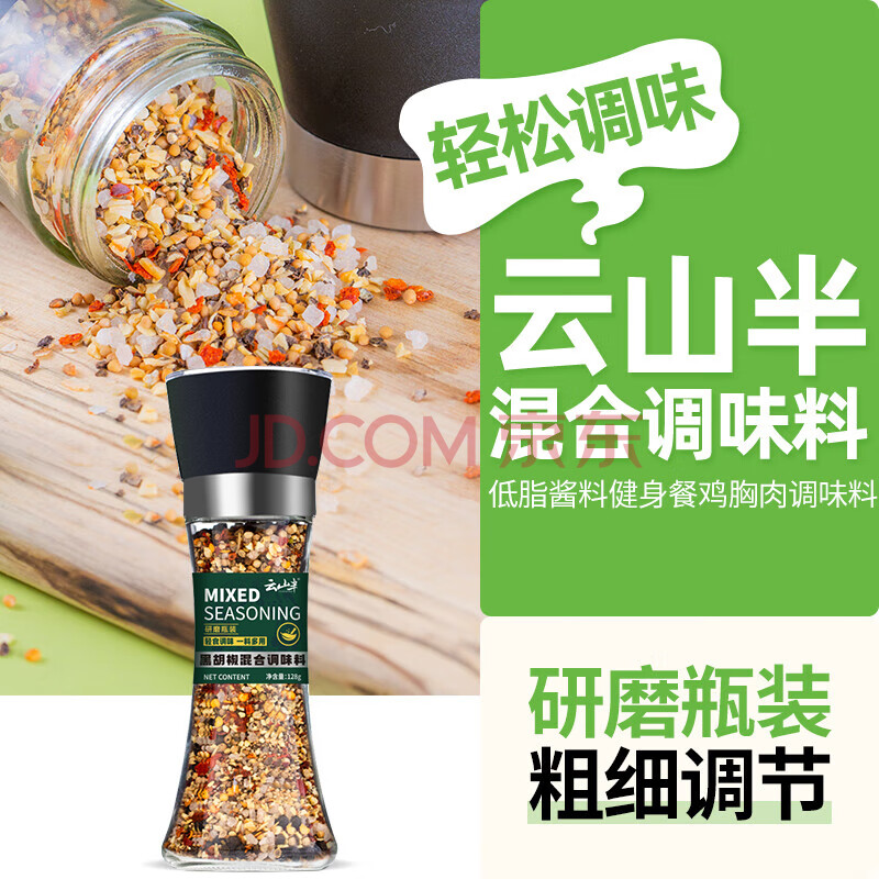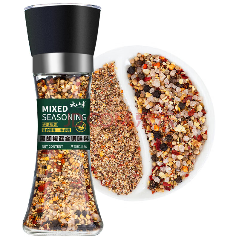 商品相册:云山半低脂海盐黑胡椒粒128g研磨瓶装健身混合西餐调料轻食牛排烧烤撒料第