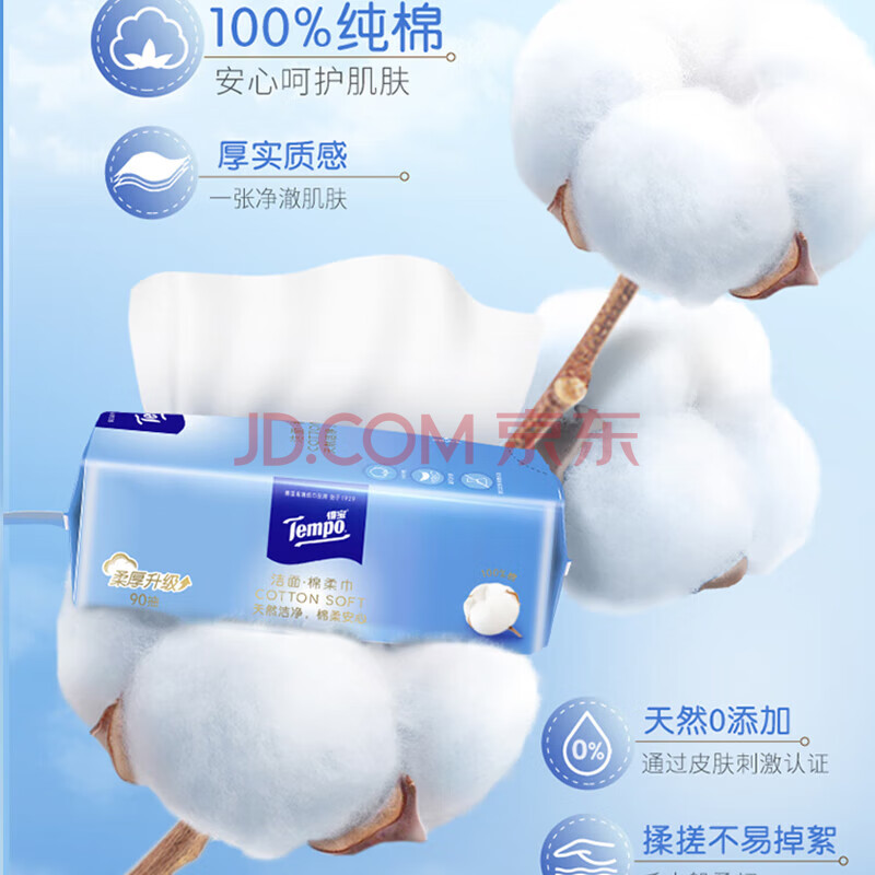 商品相册:得宝 棉柔巾90抽*3包纯棉洗脸巾一次性抽取式洁面巾居家套装湿水可用第