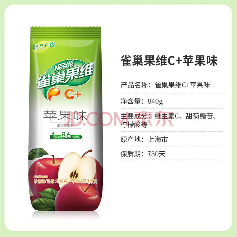 商品相册:雀巢(Nestle)果维C+苹果味840g/袋 富含维C 低脂果珍冲饮果汁粉第