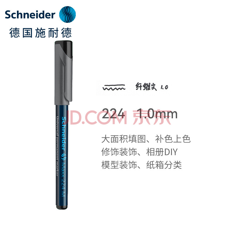 商品相册:施耐德(Schneider)永久性记号笔 环保标记笔 玻璃金属瓷砖墙面胶片笔 光盘笔 MAxx224M-黑色第