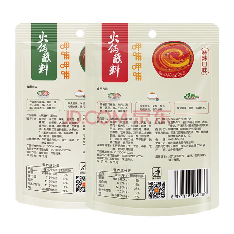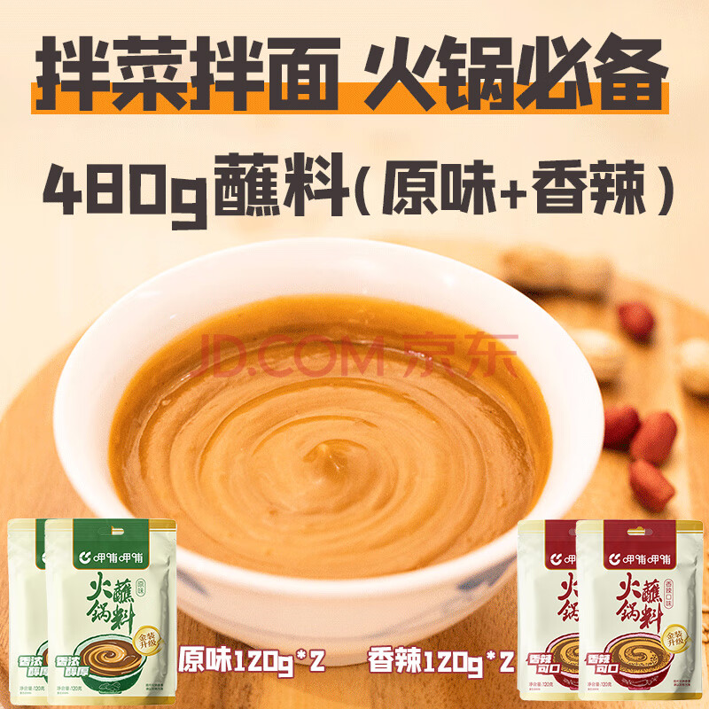 商品相册:呷哺呷哺 原味香辣火锅蘸料 花生酱 拌面拌饭酱拌菜麻酱 火锅食材120g*4袋第