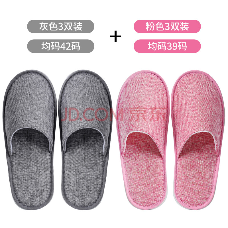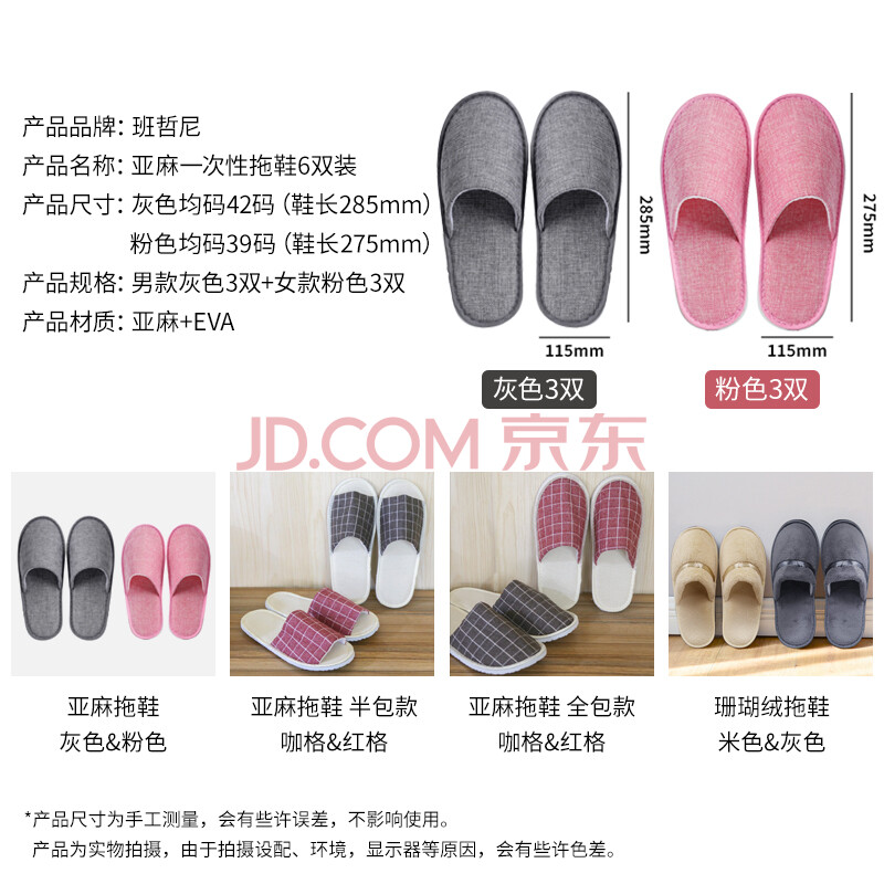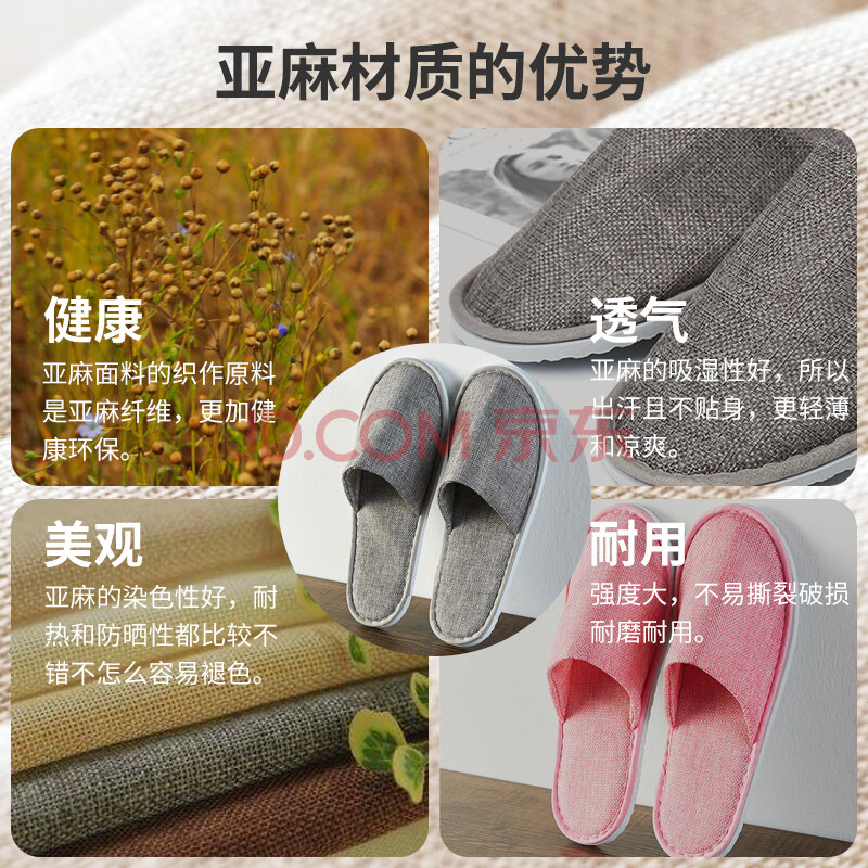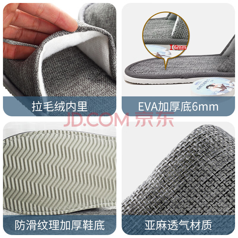 商品相册:班哲尼 一次性拖鞋待客地板拖鞋 男女旅行出差酒店宾馆美容院防滑亚麻棉布拖鞋 混装6双第